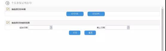 2、登錄成功后,點擊個人參保證明打印,選擇年限或時間范圍打印。